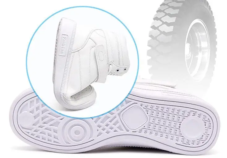 2019 Women Winter Sneakers warm plush inside Hidden Increasing autumn shoes PU Leather Shoes Woman High Top White Shoes ST213